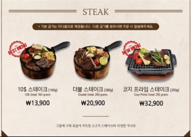 거두절미하고, 메뉴판을 먼저 보여드리겠습니다.