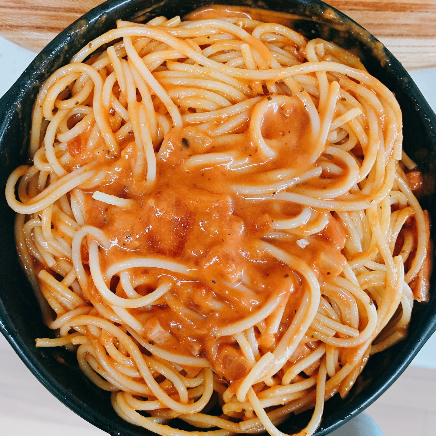 (1) 스팸 약간, 그리고 파스타 면을 먼저 익힌다.
